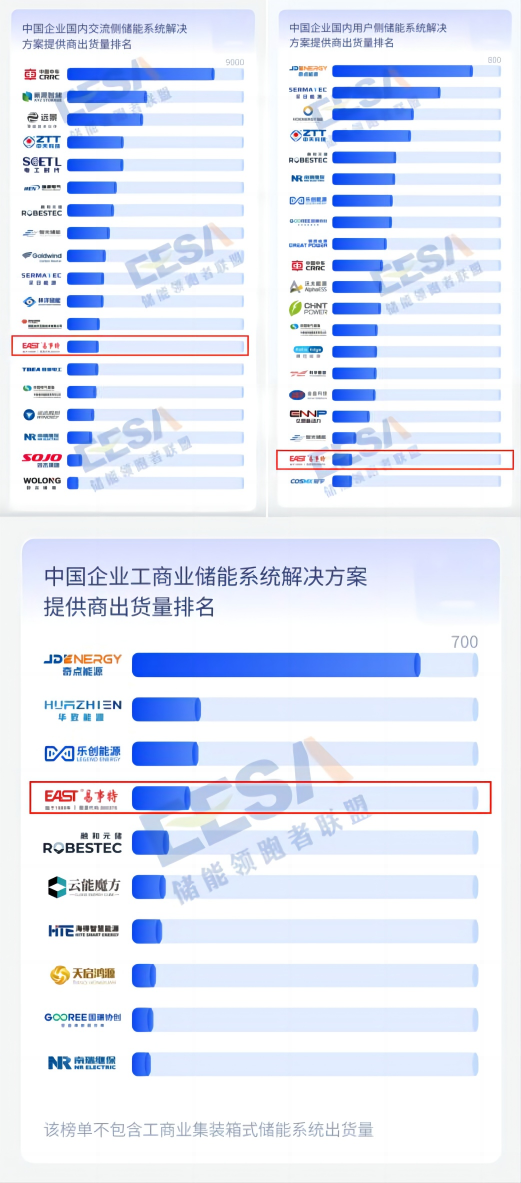 會上,儲能領(lǐng)跑者聯(lián)盟(EESA)還權(quán)威發(fā)布了“2023年度中國儲能企業(yè)全球出貨量排名”,易事特集團(tuán)榮登多項行業(yè)榜單,包括2023年中國企業(yè)國內(nèi)交流側(cè)儲能系統(tǒng)解決方案提供商出貨量TOP20、中國企業(yè)國內(nèi)用戶側(cè)儲能系統(tǒng)解決方案提供商出貨量TOP20、中國企業(yè)工商業(yè)儲能系統(tǒng)解決方案提供商出貨量TOP10。