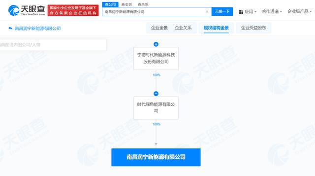 近日,南昌潤(rùn)寧新能源有限公司成立,法定代表人為范一貞,注冊(cè)資本800萬(wàn)人民幣,經(jīng)營(yíng)范圍含工程和技術(shù)研究和試驗(yàn)發(fā)展、新興能源技術(shù)研發(fā)、在線能源計(jì)量技術(shù)研發(fā)、合同能源管理、電池銷售等。股權(quán)全景穿透圖顯示,該公司由時(shí)代綠色能源有限公司全資持股,后者為寧德時(shí)代(300750)全資子公司。
