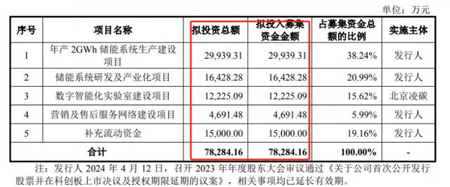 其中29939.31萬元用于年產(chǎn)2GWh儲(chǔ)能系統(tǒng)生產(chǎn)建設(shè)項(xiàng)目,16428.28萬元用于儲(chǔ)能系統(tǒng)研發(fā)及產(chǎn)業(yè)化項(xiàng)目,12225.09萬元用于數(shù)字智能化實(shí)驗(yàn)室建設(shè)項(xiàng)目,4691.48萬元用于營銷及售后服務(wù)網(wǎng)絡(luò)建設(shè)項(xiàng)目,15000萬元用于補(bǔ)充流動(dòng)資金。