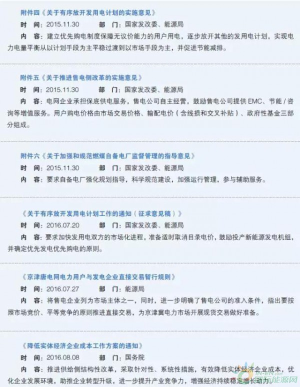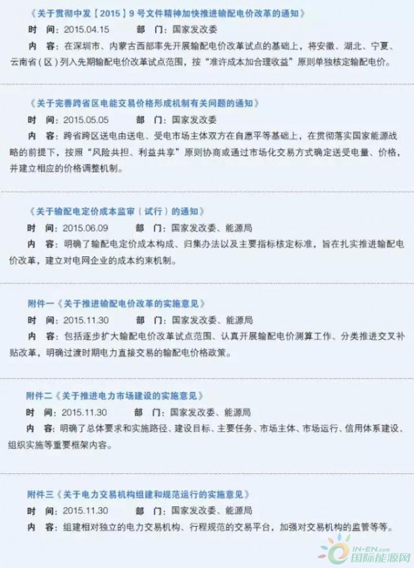 《電力發(fā)展“十三五”規(guī)劃》出臺(tái),指出在電力體制改革方面,組建相對(duì)獨(dú)立和規(guī)范運(yùn)行的電力交易機(jī)構(gòu),建立公平有序的電力市場(chǎng)規(guī)則,初步形成功能完善的電力市場(chǎng)。深入推進(jìn)簡(jiǎn)政放權(quán)。一是核定輸配電價(jià)。2017年底前,完成分電壓等級(jí)核定電網(wǎng)企業(yè)準(zhǔn)許總收入和輸配電價(jià),逐步減少電價(jià)交叉補(bǔ)貼。二是建立健全電力市場(chǎng)體系。建立標(biāo)準(zhǔn)統(tǒng)一的電力市場(chǎng)交易技術(shù)支持系統(tǒng),積極培育合格市場(chǎng)主體,完善交易機(jī)制,豐富交易品種。2016年啟動(dòng)?xùn)|北地區(qū)輔助服務(wù)市場(chǎng)試點(diǎn),成熟后全面推廣。2018年底前,啟動(dòng)現(xiàn)貨交易試點(diǎn);2020年全面啟動(dòng)現(xiàn)貨交易市場(chǎng),研究風(fēng)險(xiǎn)對(duì)沖機(jī)制。三是組建相對(duì)獨(dú)立和規(guī)范運(yùn)行的電力交易機(jī)構(gòu)。四是有序放開發(fā)用電計(jì)劃。2020年前逐步取消優(yōu)先發(fā)電權(quán)以外的非調(diào)節(jié)性發(fā)電計(jì)劃。五是全面推進(jìn)配售電側(cè)改革。2018年底前完成售電側(cè)市場(chǎng)競(jìng)爭(zhēng)主體培育工作。