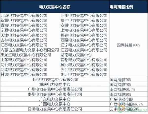 截至9月中旬,全國(guó)成立了33個(gè)電力交易中心,包括北京、廣州2個(gè)國(guó)家級(jí)電力交易中心和31個(gè)省級(jí)電力交易中心,只有海南省還沒有成立電力交易中心。其中。省級(jí)電力交易中心中,依托于國(guó)網(wǎng)的共27家,除山西和重慶電力交易中心有社會(huì)資本參股外,其余均由國(guó)網(wǎng)全資控股成立;依托于南網(wǎng)的共4家省級(jí)電力交易中心,均有社會(huì)資本參股。