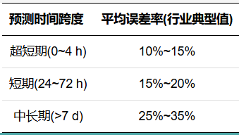 表1 能源行業(yè)風(fēng)電預(yù)測(cè)誤差水平表