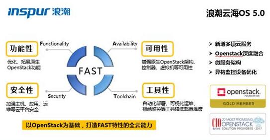對(duì)于OpenStack架構(gòu)未來的發(fā)展,張東認(rèn)為"FAST"云計(jì)算產(chǎn)品設(shè)計(jì)理念是浪潮建立差異化競(jìng)爭(zhēng)優(yōu)勢(shì)的重心所在。浪潮的"FAST"是指從Functionality(功能性)、Availability(可用性)、Security(安全性)、Toolchain(工具化)著手,提供成熟、完善、易用的OpenStack方案型產(chǎn)品,推動(dòng)開源技術(shù)更好普惠。