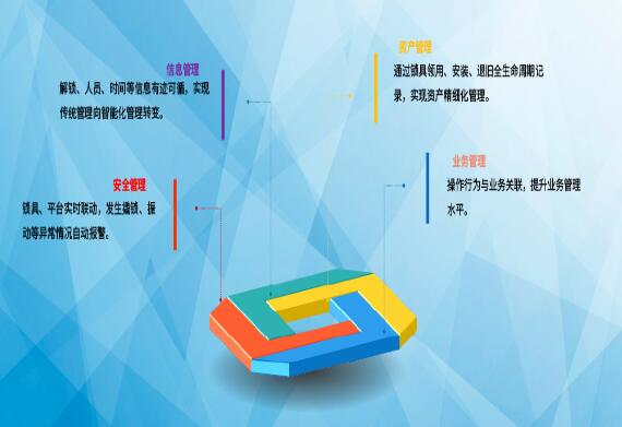 基于平臺提供的用戶數(shù)字身份信息與統(tǒng)一授權(quán)管理能力,實現(xiàn)智能鎖具的“人-物”授信訪問控制,解決表箱維護單位的“鑰匙串”問題。結(jié)合統(tǒng)一開鎖互聯(lián)APP,提供實名開鎖、鎖具授權(quán)、多鎖適配、行為記錄等服務。針對大型重點設備,還可實時監(jiān)測報警,實現(xiàn)平臺與鎖具的雙向?qū)崟r通信。
