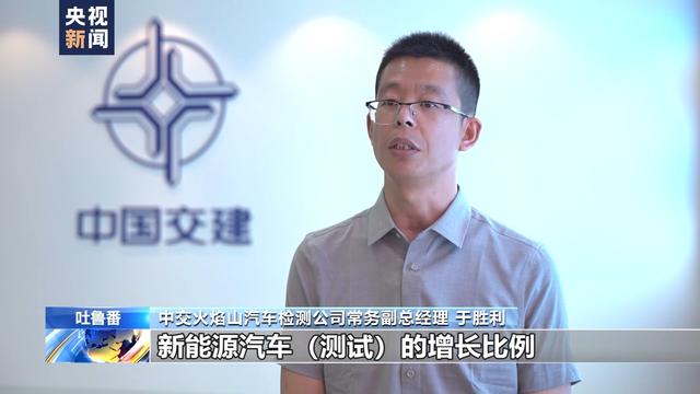 中交火焰山汽車檢測公司常務副總經(jīng)理 于勝利:吐魯番6到9月份,氣溫就可以達到40℃以上。我們同比進行分析,新能源汽車測試的增長比例已經(jīng)達到了25%左右,測試的四輛車里大概有一輛車就是新能源車。
