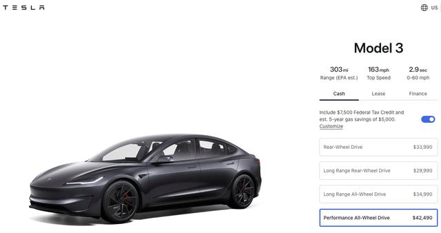 每經(jīng)AI快訊,特斯拉美國(guó)官網(wǎng)顯示,特斯拉在美國(guó)推出新款Model 3長(zhǎng)續(xù)航后驅(qū)車(chē)型,售價(jià)為42490美元。