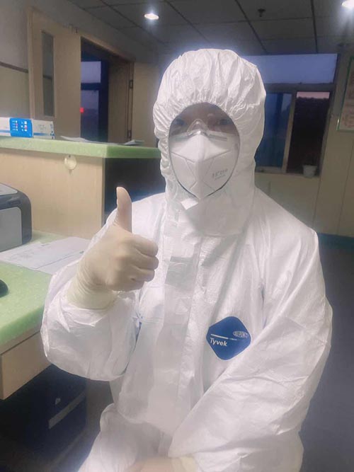 1月28日,負壓病房因人手不夠,在全院范圍緊急招募志愿者。負壓病房,需要“全副武裝”,每天和疑似病人近距離接觸,感染風險極大。但受老公經常參加搶險救援戰(zhàn)斗的影響,她多次向領導提出申請,并遞交了入黨志愿書,終于獲批“逆行”進入最危險的負壓病房。接下來的20多天,她每天都要陪著10幾個病人,認真細致的檢查防護、登記、測體溫等等,但確診檢測是個比較漫長的過程,有的病人難免產生焦慮、急躁的情緒,她總是像對家人一樣做好撫慰,幫助他們共克時艱。20多天來,她以院為家,克服了各種工作和生活困難,比如在多重防護服下行動不便、呼吸不暢、口干舌燥,累了就倚著墻蹲會,困了就靠著椅背瞇會??傊?,就這樣神秘的消失在家人的視線中,有時連報個平安的電話都沒空打。