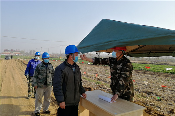 “您好,我是線路工程施工現(xiàn)場的疫情防控員,施工區(qū)域封閉式管理,進場人員請主動配合測量體溫”。