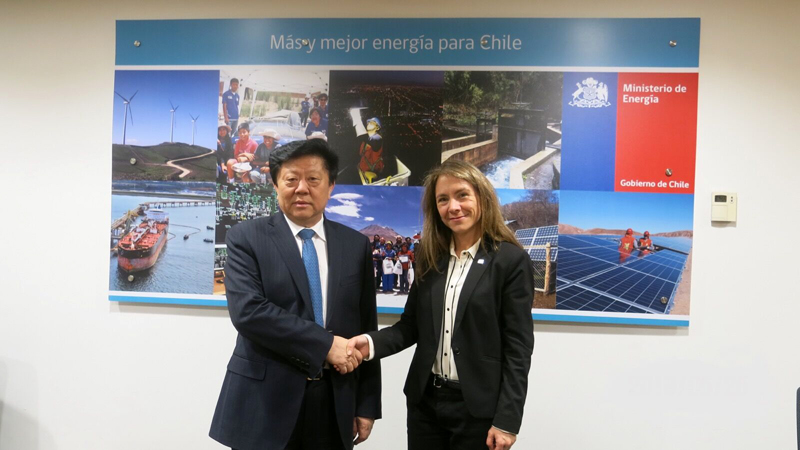 5月24日,南方電網公司黨組書記、董事長李慶奎拜會智利能源部長吉梅尼茲女士。(姜雨彤 攝)