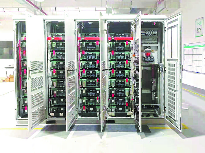 為確保項目可行性,攻關團隊先在實驗室完成50千瓦樣機各項功能試驗后,再進行500千瓦超級電容微儲能裝置的研制。該裝置主要由超級電容模塊、電力電子變流器和快速功率控制器三部分組成。快速功率控制器可在10毫秒內完成頻率檢測,電力電子變流器可在2毫秒內實現有功功率的快速、精準支撐,并且電力電子變流器集成了電網諧波主動抑制、無功功率靈活調節(jié)功能,讓該裝置成為集儲能與電能質量管理于一體的新型補償裝置。今年2月7日,這套變電站超級電容微儲能裝置投入使用。