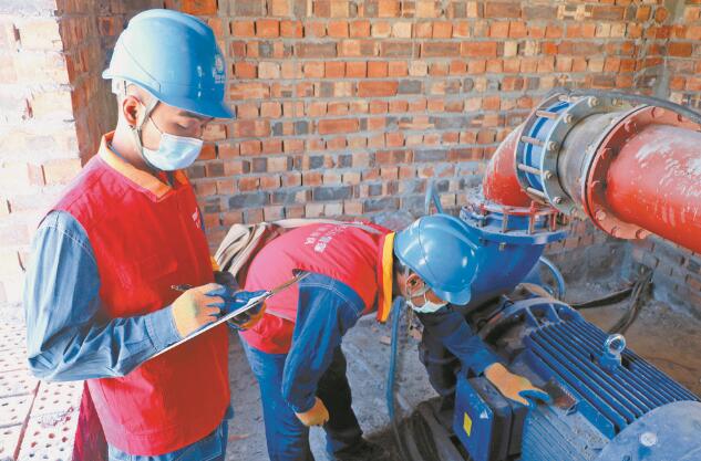 供電員工調(diào)試水肥一體化機(jī)。 王亮軍 攝