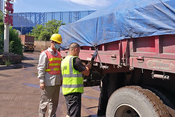 圖為燃料轉(zhuǎn)運(yùn)班人員正在檢查汽車(chē)封簽