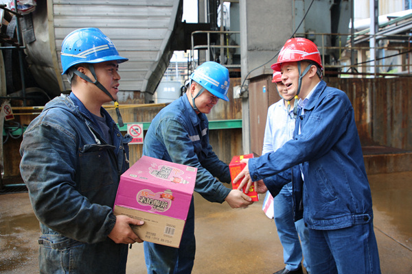 雷小平一行來(lái)到各生產(chǎn)部門(mén)、職工食堂以及集控室、2號(hào)機(jī)引風(fēng)機(jī)等消缺現(xiàn)場(chǎng),為生產(chǎn)一線(xiàn)人員、后勤人員送去方便面、飲料、涼茶等慰問(wèn)品。在各生產(chǎn)部門(mén)、集控室和消缺現(xiàn)場(chǎng),雷小平與生產(chǎn)一線(xiàn)人員握手交談,詢(xún)問(wèn)安全生產(chǎn)、機(jī)組消缺及人員值班情況,對(duì)生產(chǎn)一線(xiàn)人員盡忠職守,默默奉獻(xiàn)的精神表示肯定。他鼓勵(lì)各部門(mén)人員振奮精神,鼓足干勁,大干四季度,齊心協(xié)力做好安全生產(chǎn)各項(xiàng)工作,并叮囑大家節(jié)日期間要加強(qiáng)值班管理,緊繃安全生產(chǎn)弦不放松,各檢修部門(mén)要認(rèn)真完成各項(xiàng)檢修任務(wù),全面打好設(shè)備攻堅(jiān)戰(zhàn),運(yùn)行部門(mén)要把各項(xiàng)保電措施做好做實(shí)做到位,助力企業(yè)圓滿(mǎn)完成全年目標(biāo)任務(wù)。在職工食堂,雷小平對(duì)后勤人員的辛勤工作表示感謝,并提前送上節(jié)日的祝福。