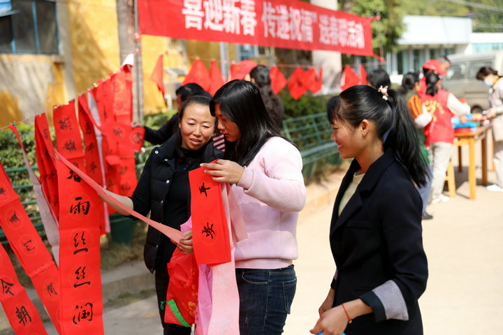 志愿者早早地將1000多幅春聯(lián)和福字掛上,“春風(fēng)拂嶺千山翠,政策歸心萬世昌”、“春色明媚山河披錦繡,華夏騰飛祖國萬年輕”,一副副紅紅火火的春聯(lián),一張張祈愿平安的“福”字,為即將到來的春節(jié)增添了濃濃的喜慶氛圍。不少職工和外來務(wù)工人員聞?dòng)嵹s來領(lǐng)取春聯(lián),喜悅之情溢于言表。“今年我們響應(yīng)國家倡議,計(jì)劃就地過年。”老家在四川的吳女士拿著自己挑選的春聯(lián),滿是感謝:“本來打算出去買春聯(lián),增加點(diǎn)迎春氣氛,現(xiàn)在有了,也將福氣帶回家,感謝公司想得周到。”