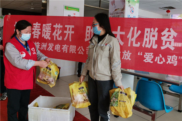 中國電力網(wǎng)訊  近日,大唐華銀株洲發(fā)電有限公司認購大唐集團公司定點扶貧縣——廣西自治區(qū)大化縣受疫情影響而滯銷的雞708只,并發(fā)放給員工。