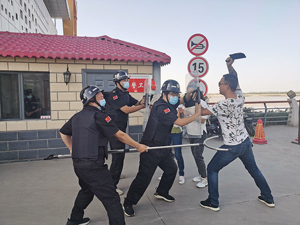 本次演練根據(jù)企業(yè)規(guī)模情況、突發(fā)事件人數(shù)及影響范圍,重點圍繞10人以下的突發(fā)性群體事件開展,參演職工由治安保衛(wèi)人員及公司分管安全、后勤及綜合服務(wù)保障等人員組成,現(xiàn)場模擬了一行社會團(tuán)伙在廠區(qū)門口處堵截公務(wù)車輛通行、尋釁滋事、聚眾斗毆的場景,現(xiàn)場職工和治安保衛(wèi)人員通過啟動應(yīng)急預(yù)案、信息傳達(dá)、布置警戒、匯報上級、召集會議、制定措施到落實執(zhí)行,緊張有序地完成了演練任務(wù)。過程中,首先對事情相關(guān)人員進(jìn)行勸說,經(jīng)過正當(dāng)渠道和方法提供處理途徑,再對聚眾鬧事負(fù)責(zé)人單獨分開協(xié)商,最后對混亂局面進(jìn)行控制。通過對可能突發(fā)的各種情形進(jìn)行可靠控制,有效保障了生產(chǎn)辦公秩序正常進(jìn)行。