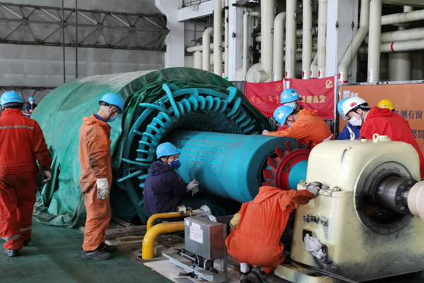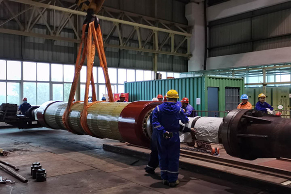 下午14時(shí)10分,隨著起重指揮人員的一聲哨響,發(fā)電機(jī)抽轉(zhuǎn)子工作正式開始,抽出期間,各專業(yè)人員分工有序,密切配合,時(shí)刻注意轉(zhuǎn)子與定子的間隙,及時(shí)調(diào)整轉(zhuǎn)子的移出量和中心位置,每一步都做到精益求精。整個(gè)抽出過程中,公司副總經(jīng)理張旭耀攜各部門負(fù)責(zé)人、專工現(xiàn)場監(jiān)督、指導(dǎo),隨時(shí)協(xié)調(diào)工作中可能出現(xiàn)的問題,為抽轉(zhuǎn)子作業(yè)的順利進(jìn)行,提供了可靠保障。