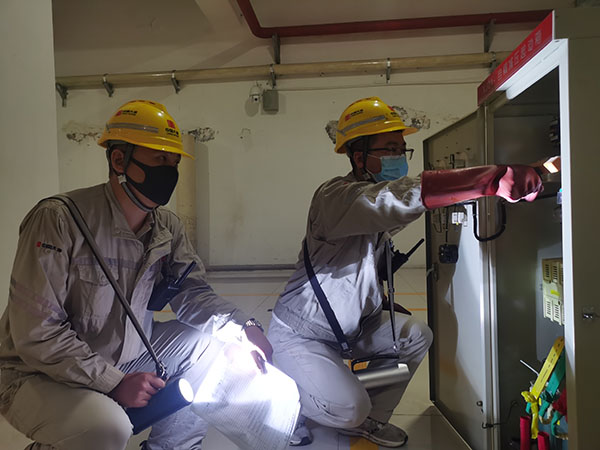 運(yùn)行團(tuán)員青年進(jìn)行應(yīng)急排水泵電源檢查
