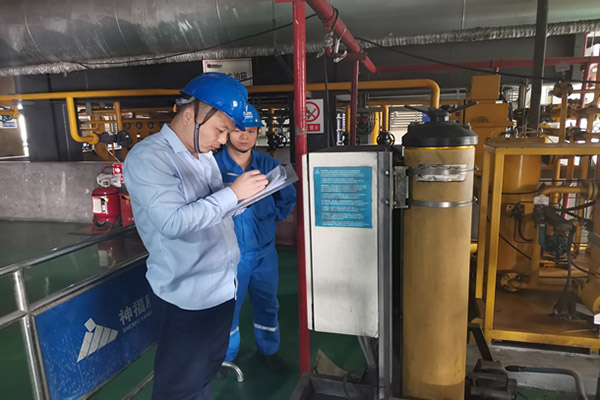 汽機零米層,該公司檢修部汽機點檢員正在對6號機組EH油濾油工作進行過程監(jiān)督、檢查、簽證,保證油質(zhì)合格。