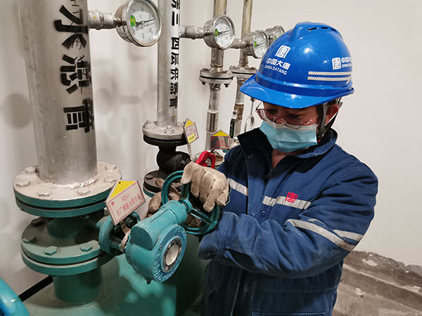 團(tuán)員青年對(duì)供熱管路閥試驗(yàn)