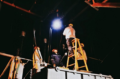 除夕前夕,正逢山間陰雨天氣,沒有環(huán)境就創(chuàng)造環(huán)境,場站人員克服困難,當(dāng)天搭建遮蓋變壓器的檢修工棚就位,當(dāng)晚完成熱油循環(huán)提高器身溫度,防止變壓器器身受潮。