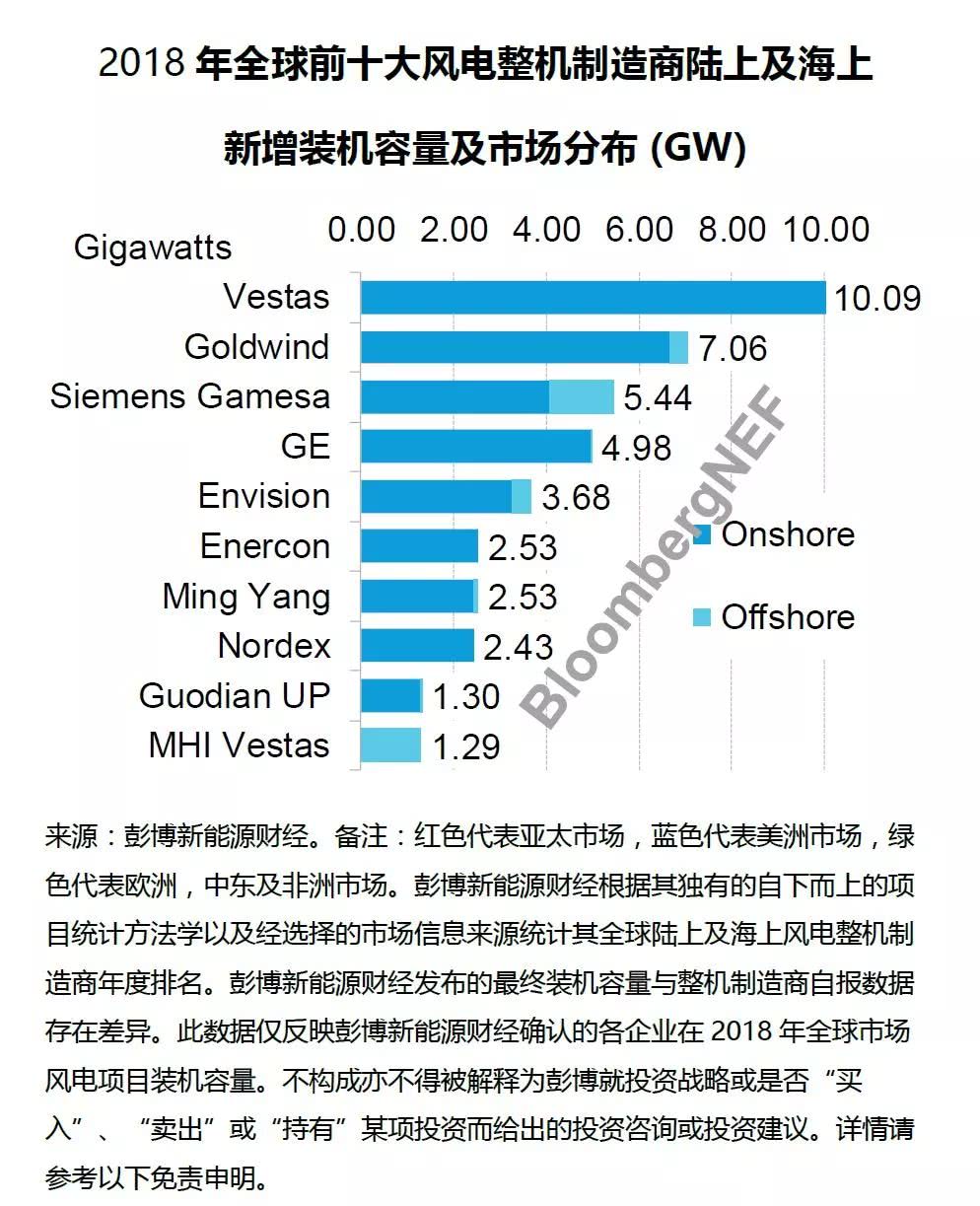 據(jù)悉,國際著名咨詢機(jī)構(gòu)彭博新能源財(cái)經(jīng)昨日正式發(fā)布了2018年全球風(fēng)電整機(jī)商排名。具體排名及報(bào)告如下: