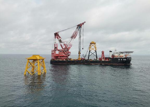5月5日,中國能建廣東火電順利完成粵電陽江沙扒海上風(fēng)電項(xiàng)目首臺四樁導(dǎo)管架風(fēng)機(jī)基礎(chǔ)安裝。該導(dǎo)管架高度超50米,總重超930噸,是目前已知國內(nèi)最大最重的四樁導(dǎo)管架風(fēng)機(jī)基礎(chǔ)之一。