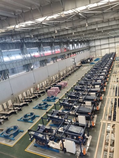 在大規(guī)模生產(chǎn)工作中,有效拓寬生產(chǎn)空間、采用精細化車間定置管理將極大提升生產(chǎn)效率。生產(chǎn)團隊根據(jù)物資到貨情況及生產(chǎn)進程,合理規(guī)劃空間布局,提高空間利用率的同時兼顧后續(xù)工序便利性。充分利用外場地及庫房空間,巧思布置,使得大批量存放半成品機組得以實現(xiàn)。整齊劃一的機組,形成了華銳風電一道最美的風景線。