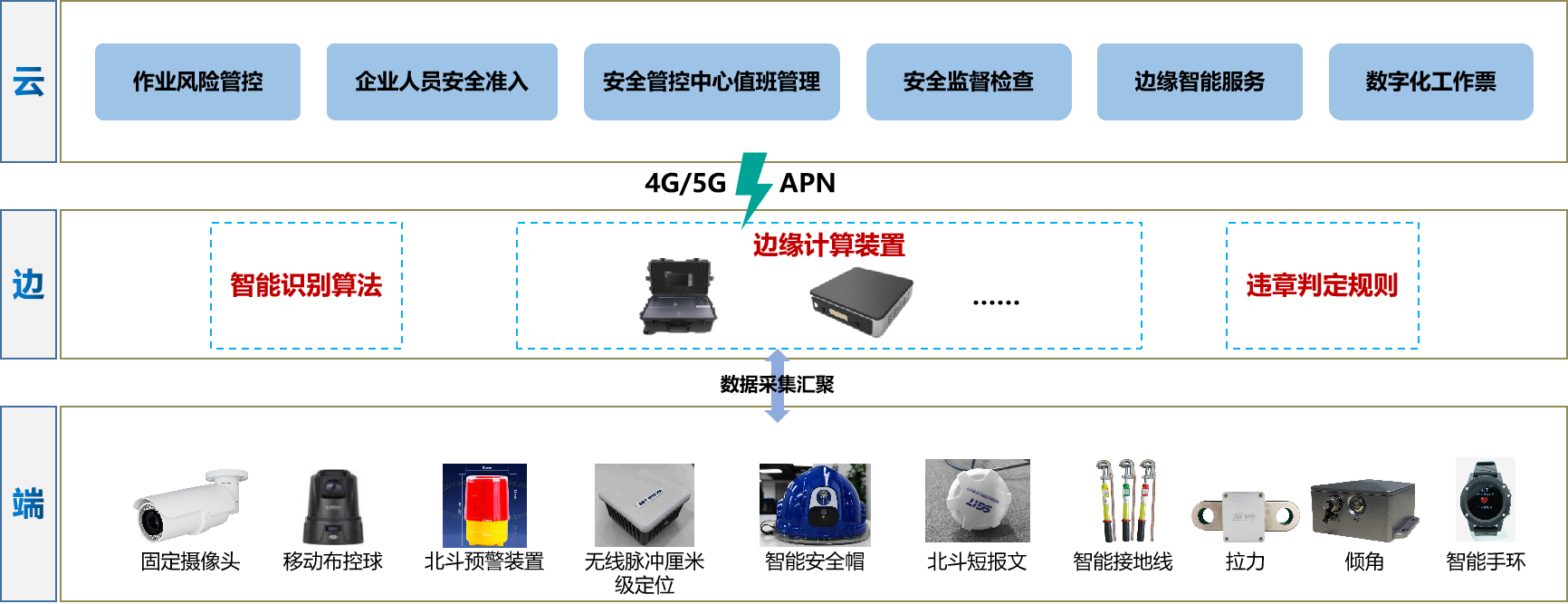 國網(wǎng)信通產(chǎn)業(yè)集團(tuán)作為國家電網(wǎng)公司能源數(shù)字化建設(shè)的主力軍,自5月份以來,由集團(tuán)領(lǐng)導(dǎo)親自部署,集團(tuán)數(shù)字化建設(shè)運(yùn)營項(xiàng)目推進(jìn)辦公室牽頭,集各單位所長,齊心協(xié)力、攻堅(jiān)克難,承擔(dān)了現(xiàn)場作業(yè)數(shù)字化安全管控智能終端頂層設(shè)計(jì)、標(biāo)準(zhǔn)編制、云邊端協(xié)同、邊緣計(jì)算裝置小型化智能化、智能終端數(shù)據(jù)標(biāo)準(zhǔn)統(tǒng)一、智能終端多模態(tài)融合等主要任務(wù),同時(shí)超前謀劃技術(shù)應(yīng)用帶來的作業(yè)模式轉(zhuǎn)變,創(chuàng)新性地提出了云端邊緣智能服務(wù)(模型統(tǒng)一納管、技術(shù)運(yùn)營一張圖)、邊端就地分析服務(wù),協(xié)同應(yīng)用模式,落地現(xiàn)場作業(yè)數(shù)字化安全管控整體解決方案和一系列終端產(chǎn)品,主要包括以下的幾個(gè)方面: