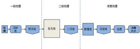 按處理深度通??蓪?span id="6u88zyppj" class="hrefStyle">污水處理分為一級(jí)處理、二級(jí)處理和深度處理。一級(jí)處理的主要目的是去除懸浮狀態(tài)固體,常采用物理法,對(duì)于BOD5的去除率一般在20%~30%;二級(jí)處理的目的是進(jìn)一步去除污水中膠體和溶解性污染物,常使用生物法,BOD5的去除率在90%以上;深度處理以達(dá)到更高的處理與排放要求或污水回用為目的。膜法技術(shù)通常用于處理二級(jí)處理活性污泥出水,或者將膜處理系統(tǒng)直接臵于生化池,代替原有二沉池、絮凝沉淀池等環(huán)節(jié)。使用膜法技術(shù)改造之后,傳統(tǒng)污水處理工藝可以直接生產(chǎn)出高品質(zhì)再生水。