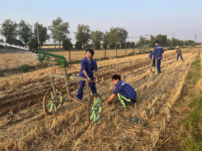 風(fēng)電河南區(qū)域公司員工協(xié)助河南省尉氏縣多個村莊村民對農(nóng)田里的農(nóng)作物進行澆灌
