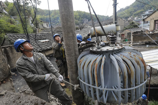 中國(guó)電力網(wǎng)訊 11月4日一大早,在浙江寧波鄞州區(qū)塘溪鎮(zhèn)東山村,三輛電力工程車(chē)正載著二十余名工作人員沿著山路蜿蜒而上,當(dāng)天,他們的工作任務(wù)是拆除大嵩片區(qū)內(nèi)最后一臺(tái)屋頂變壓器。