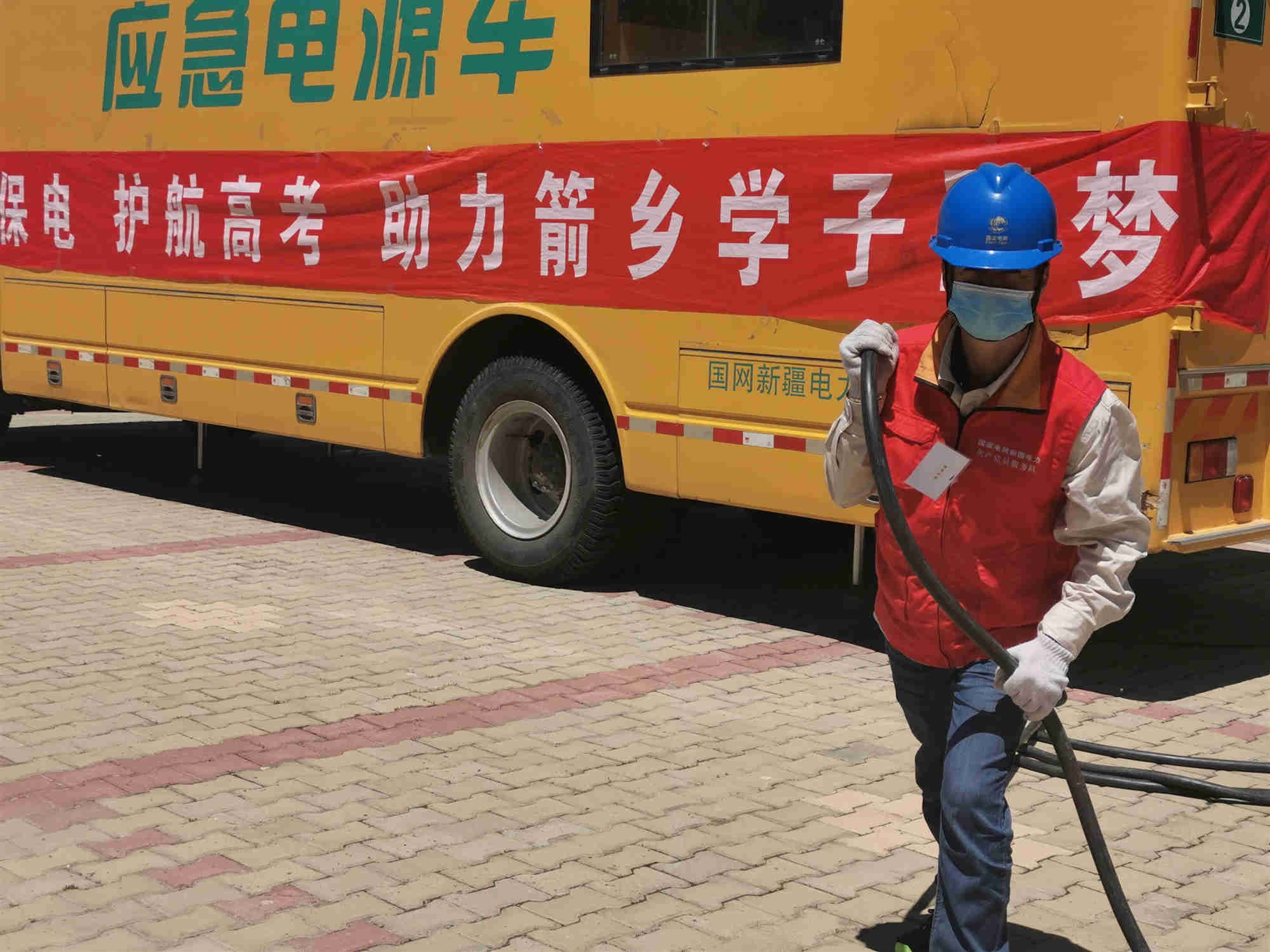 中國電力網(wǎng)訊 7月7日清晨6時,國網(wǎng)伊犁供電公司黨員服務(wù)隊(duì)員早早趕往轄區(qū)高考考點(diǎn)。到現(xiàn)場后兩人要對應(yīng)急供電車輛和線路設(shè)備做最后的檢查,確??荚嚻陂g電力供應(yīng)無憂。