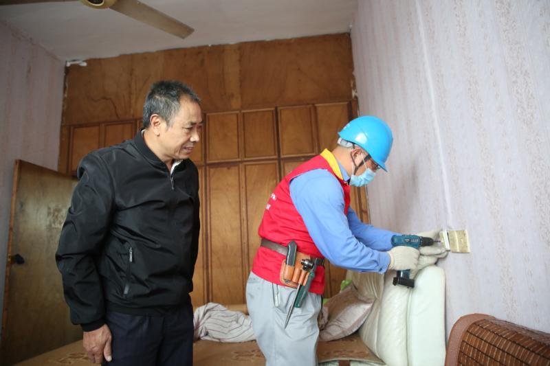 志愿者們?yōu)槔先藗兯蜕衔繂柶?,和老人聊天,詢問他們的身體和生活情況,叮囑他們注意保重身體。在交流的同時,還為他們檢查維護用電情況,重點檢查家里的用電設備和取暖設施,及時更換損壞的燈泡、開關等,并向老人們講解安全用電常識和惠民政策,提醒他們冬季用電安全的注意事項。