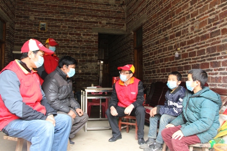 今年受新冠病毒疫情的影響,學(xué)校還未正常開學(xué),孩子們都在家中自行學(xué)習(xí),隊(duì)員采取逐戶上門探望的方式開展服務(wù)活動(dòng)。在李志成、李志祥同學(xué)家中,兩兄弟正一起埋頭溫習(xí)功課,看到‘紅馬甲’叔叔們?cè)谶@個(gè)時(shí)期里來(lái)到家里,兩兄弟高興得跳了起來(lái),大聲的呼喊在對(duì)面山上挖筍的爸爸趕快回家。兄弟倆的媽媽離家出走十多年未回,爸爸又患上了間歇性精神病,三父子相依為命,生活來(lái)源主要依靠農(nóng)村低保補(bǔ)助和叔叔的資助,家境貧困令人心酸??吹絻尚值芘d高采烈地拿著叔叔們給的‘紅包’,李爸爸眼中充滿了晶瑩和感動(dòng),緊緊地握著隊(duì)員們的手無(wú)法言語(yǔ)。李依婷同學(xué)是六年級(jí)班上唯的女生,文靜秀氣不愛言語(yǔ),由于父母離異后紛紛外出,小依婷跟著年邁的奶奶共同生活,學(xué)習(xí)非常刻苦,成績(jī)?cè)诎嗌吓琶傲?,?duì)員們?yōu)樗蜕狭伺D毯臀繂?wèn)金,和她一起翻閱了學(xué)習(xí)筆記,親切鼓勵(lì)她要努力學(xué)習(xí),好好報(bào)答奶奶的養(yǎng)育之恩···