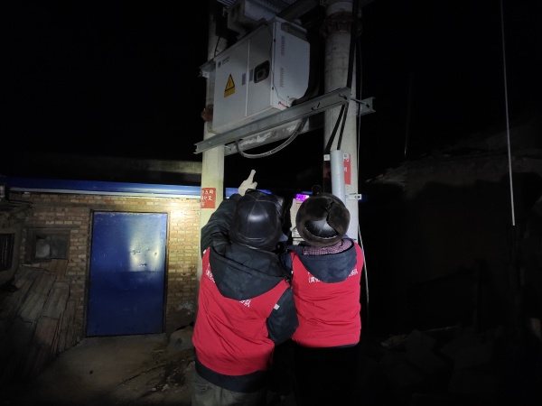 22時左右,街上十分寂靜,靜的地上落下一根針都能聽到,化隆縣公司運維人員騎著電動三輪車,穿梭在大街小巷,對各臺區(qū)進(jìn)行“號脈問診”。“10千伏加五路西上村001號公網(wǎng)變,A相2.2,B相1.9,C相2.3,設(shè)備接頭和電纜頭均無發(fā)熱現(xiàn)象......”林海云在監(jiān)測完該臺區(qū)后大聲的宣讀,一旁的張浩帆一邊迅速的在記錄本上記錄著,一邊跟著復(fù)誦,生怕記錯一個數(shù)字。