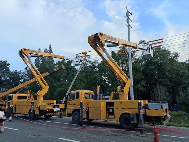 搶修方案一出,國網(wǎng)郫都供電公司各相關(guān)班組相互配合、迅速行動。一方面緊急調(diào)集電桿、兩臺吊車、兩臺帶電作業(yè)車等搶修物資和設(shè)備,另一方面調(diào)配相關(guān)施工作業(yè)人員馬不停蹄趕到現(xiàn)場。同時(shí),以最快的速度做好搶修工作、確定現(xiàn)場搶修工作負(fù)責(zé)人等。