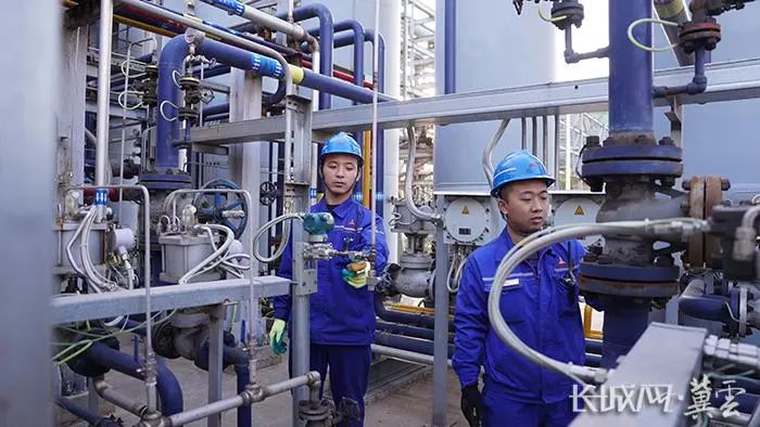 每小時10000標方燃料電池用氫氣生產(chǎn)裝置項目現(xiàn)場,技術(shù)人員正在進行日常巡檢。長城網(wǎng)·冀云客戶端記者 邢丁 攝