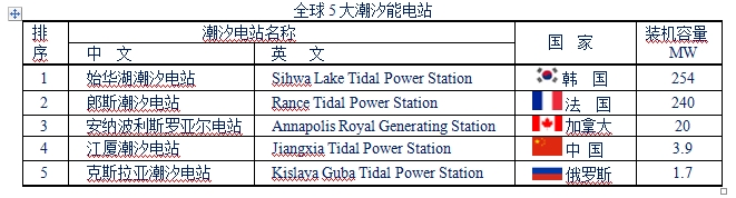 世界上最大的潮汐電站是韓國始華湖潮汐電站(Sihwa Lake Tidal Power Station),裝機(jī)容量為254MW。中國最大的潮汐電站是江廈潮汐電站(Jiangxia Tidal Power Station ),裝機(jī)容量僅為3.9MW。