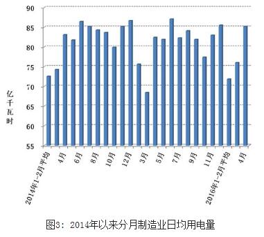 1-4月份,全國(guó)制造業(yè)用電量9225億千瓦時(shí),同比下降0.9%,增速比上年同期低0.7個(gè)百分點(diǎn)。4月份,全國(guó)制造業(yè)用電量2557億千瓦時(shí),同比增長(zhǎng)0.8%;制造業(yè)日均用電量85.2億千瓦時(shí)/天,分別比上年同期和上月增加0.7億千瓦時(shí)/天和9.2億千瓦時(shí)/天。