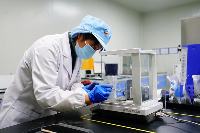富臨新能源技術(shù)人員對公司磷酸鐵鋰下一代產(chǎn)品工藝進行反復(fù)實驗驗證。全媒體記者 何飛 攝