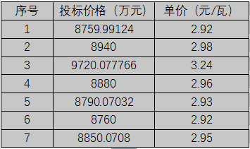 日前有媒體爆出單晶280W組件報(bào)價(jià)2.6元/瓦的消息,光伏們向該項(xiàng)目實(shí)施單位天津電力設(shè)計(jì)院了解了具體情況獲悉,實(shí)際的組件中標(biāo)價(jià)格為2.91元/瓦。盡管該項(xiàng)目招標(biāo)公告上標(biāo)注的項(xiàng)目容量為11MW,但28985695.2萬元的中標(biāo)總價(jià)實(shí)際為35574塊280瓦的組件(實(shí)際總量9.9MW),另外搭配了8臺(tái)1MW和2臺(tái)1.25MW的逆變器。所以按照9.9MW容量計(jì)算,組件價(jià)格應(yīng)為2.91元/瓦;如果按照11MW計(jì)算,組件價(jià)格為2.6元/瓦,誤解來自于此。