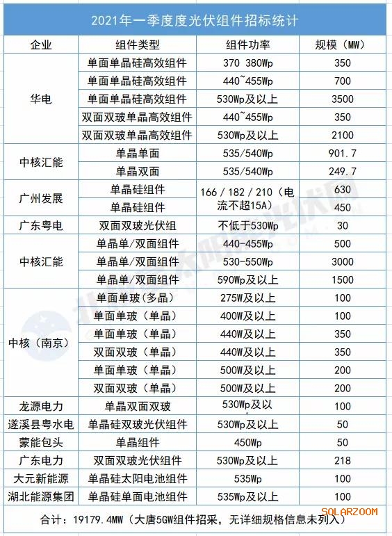 具體來看,2021年1月12日,中核匯能率先開標(biāo)2021年度光伏組件集中采購,隆基、東方日升、天合3家擬瓜分了1.3GW組件大單,其中535/540W組件招標(biāo)規(guī)模912.7MW,占比69%。