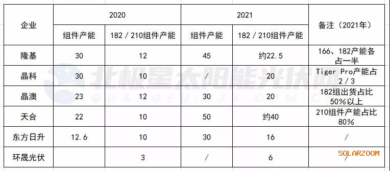 光伏頭部企業(yè)2020—2021組件產(chǎn)能(數(shù)據(jù)來企業(yè)公開信息)