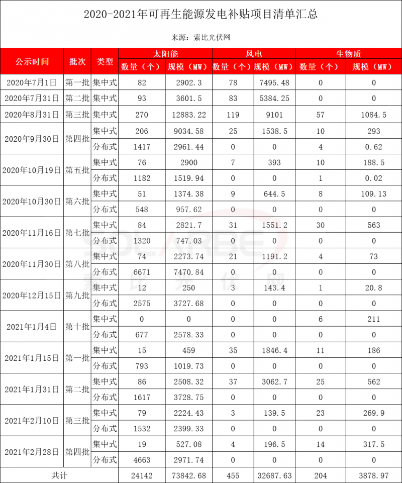 2020年2月28日,國(guó)網(wǎng)公布2021年第四批可再生能源發(fā)電補(bǔ)貼項(xiàng)目清單。