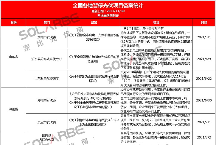 全國(guó)各地暫停光伏項(xiàng)目備案統(tǒng)計(jì)(全年統(tǒng)計(jì))