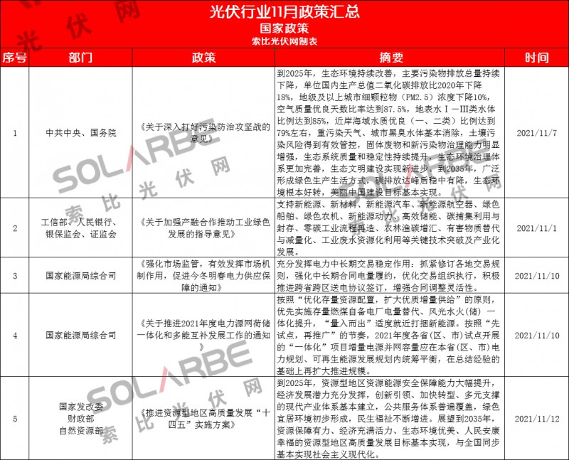 那么,11月份的光伏行業(yè)有哪些政策值得重點(diǎn)關(guān)注呢?下面來看索比光伏網(wǎng)的梳理。