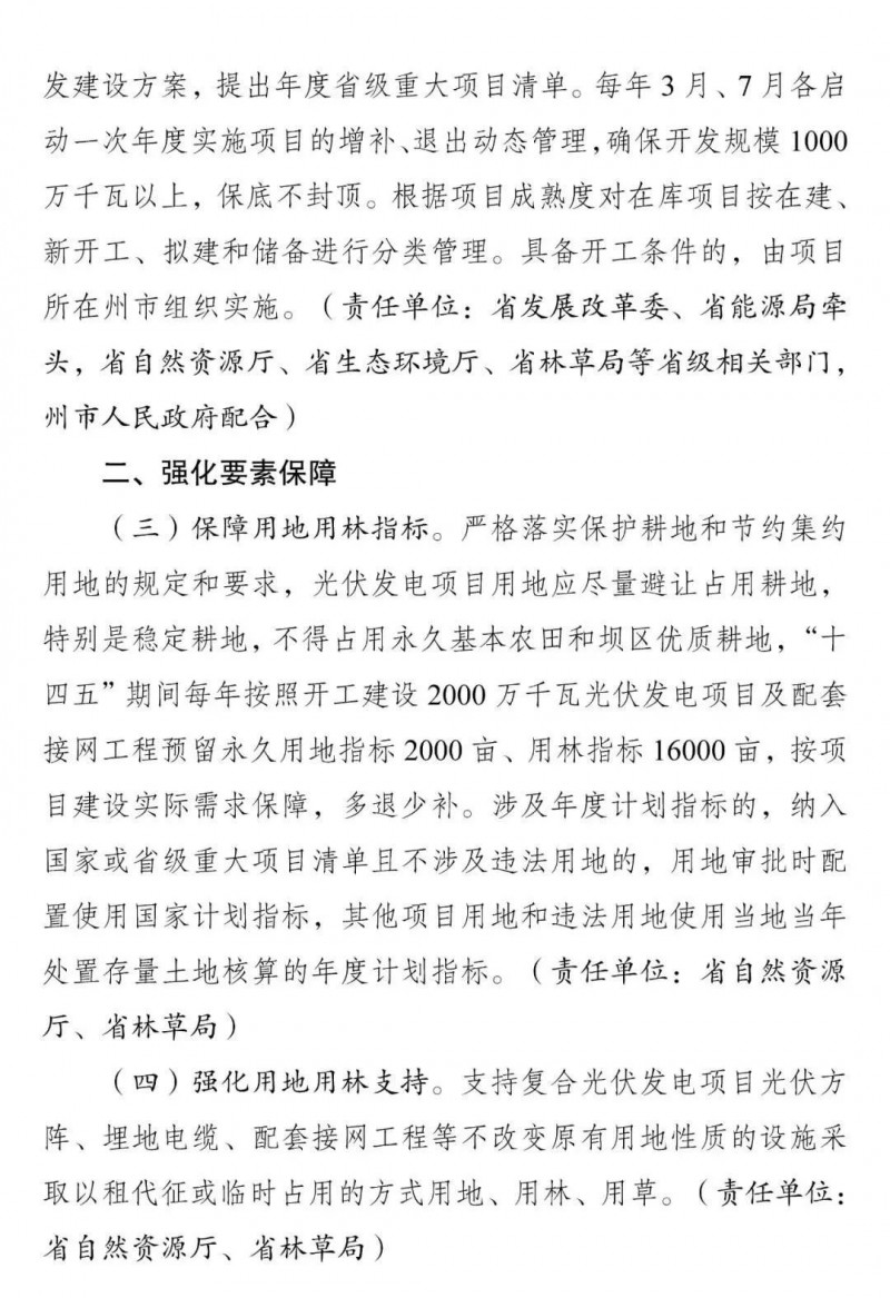 “十四五”期間,光伏項(xiàng)目確保每年開工20GW以上,并預(yù)留配套接網(wǎng)工程用地2000畝和用林指標(biāo)16000畝。在不改變?cè)玫匦再|(zhì)的條件下,依法減免城鎮(zhèn)土地使用稅和耕地占用稅。