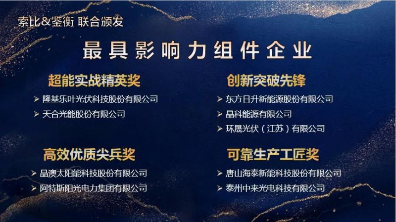最具影響力組件企業(yè)獎項及評選依據(jù)如下: