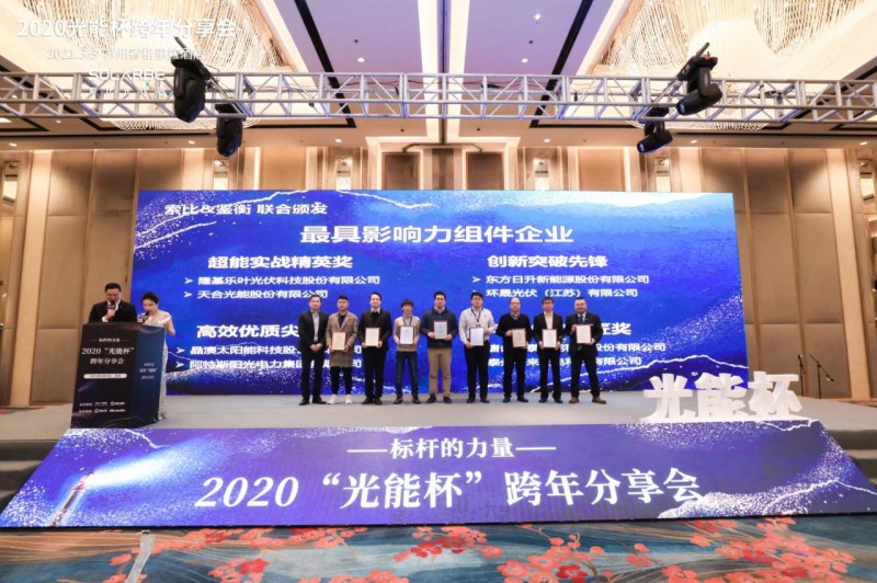 3月3日,由索比光伏網(wǎng)主辦的2020年度“光能杯”跨年分享會暨頒獎典禮圓滿落幕。這是2021開年的全國首個大型光伏頒獎盛宴,來自中國各大光伏品牌企業(yè)代表及各地經(jīng)銷商代表齊聚一堂,400余人共同見證中國光伏行業(yè)的開年榮耀時刻。